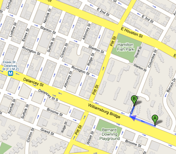 The ship's manifest for Samuel Kalb shows that he was traveling with Moische Goldstein, age 17, also a laborer. Goldstein's last residence was Bilgoraj (which is near Tomaszow), and he was born in Tomaszow. Both of them were going to stay with Moische's brother, Abram, at 300 Delancey St. (Moische's father was Josef Goldstein, which might be useful for further research.) By July, 1914, Samuel must have arranged for an apartment for the family. The ship's manifest shows that they were going to 62-64 Colombe St., which I take to be Columbia Street, around the corner from Goldstein's Delancey Street apartment. The map above shows the approximate location in present day New York of the two locations (A) Goldstein's apartment and (B) Kalb's apartment. Of course, the neighborhood has changed.